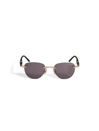 这款无框太阳镜配备金色金属镜框和灰色镜片,管状镜腿的设计灵感源自大班书写工具,并点缀“Montblanc”字样。左侧镜片以激光雕刻万宝龙品牌标识。