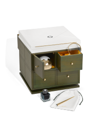 万宝龙臻呈Happy Holiday 2025套装,礼赞经久不衰的书信艺术。 此套装全球限量发行100件,既是收藏家的珍贵藏品,也可作为一份意义深远的礼物,彰显个体表达和人与人之间的联结的重要性。 以精工细作的包装盒承载,其设计让人联想到作家的珍奇屋,创作者可在其中存放旅途中收集的纪念品。在8个抽屉后方,一段穿梭白雪皑皑的勃朗峰和品牌悠久历史的旅程就此展开。精心甄选之作激发无尽创想,为本季提供舒适体验,助您无忧出游。打开信封形顶部隔层,可见1支别具一格的万宝龙墨水笔和节日贺卡。开箱体验呼应写作精神:深思熟虑、个性鲜明且富有深意,在复古风格绿色和金色调中焕发新生。