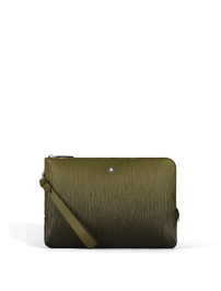 这款手袋的表面令人联想到树纹质感,橄榄绿色调呈现手工涂抹的墨韵效果,在包体上渐次淡去。宽敞的主隔层内设有1个内部开口袋,外部D形环随附腕部提手,携带轻松。多种使用方式,手拿或放入其他包袋中皆可。