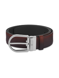 这条可调节皮带的特点是饰有万宝龙六角白星品牌标识的马蹄形带扣。勃艮第色皮带设计有墨韵效果,令造型更显精致。