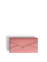 万宝龙匠心系列钱夹,采用十字花纹印花全粒面树莓粉色皮革制成,时尚简约的必需品。这款横版钱夹外形灵感源于信封,可通过配有按扣的翻盖固定,外部装饰镀钯万宝龙六角白星品牌标识。内里饰以撞色,以玫瑰色皮革制成,设有2个纸币隔层,12个信用卡位,1个拉链袋可收纳硬币。
