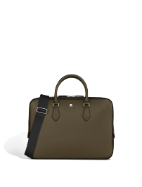 这款超薄公文包采用卡其绿色匠心系列皮革制成,宽敞主隔层可收纳A4纸大小的文件、电子产品和书写工具,可拆卸可调节背带提供多种佩戴方式。