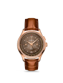 - 烟熏棕色表盘,镀玫瑰金阿拉伯数字和时标;脉搏计刻度