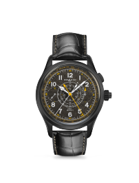 万宝龙1858系列腕表的灵感源自二十世纪二十、三十年代专为军事用途和探险而设计、富有传奇色彩而又专业精密的美耐华腕表。万宝龙1858系列腕表是对这些历史悠久的时计的重新演绎,展现山地探险精神,代表着回归自然的现代潮流。 在今年的墨西哥国际高级钟表展(Salon International de Alta Relojeria,SIAR)上,万宝龙推出了万宝龙1858系列追针计时码表限量版(限量100枚),44毫米黑色DLC涂层表壳与黑色黑曜石表盘相得益彰,并采用对比强烈的黄色色调,以此方便读时 44毫米深黑色钛金属表壳经类钻碳(Diamond-like-Carbon,DLC)处理,其颜色被命名为“Black 4”,意为至暗漆黑的“非常之黑”。在高压下采用极其微小的玻璃小球对金属进行冲压,使其呈现DLC涂层几乎无法粘附的独特微观纹理,在表面形成精致哑光处理效果。表背则展示了自制单按钮MB M16.31型计时机芯,灵感源于1909年推出的原创美耐华19-09CH机芯及其二十世纪三十年代问世的用于怀表和腕表的升级版17-29型机芯。 腕表搭配饰以米色缝线的黑色鳄鱼皮表带。