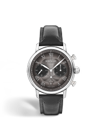 万宝龙明星系列计时腕表融汇品牌精妙设计规范,将优雅气质推向新的高度。这款腕表搭配都市灰色表盘,呈现墨韵效果,饰有万宝龙放射状六角白星品牌标识和玑镂纹图案,配以镀铑罗马数字和叶形指针,可指示时、分、秒,计时功能使用“巴顿式”指针指示。搭载MB 25.13自动上链机芯,42mm鹅卵石形精钢表壳和机芯镂空表背,可将饰有六角白星品牌标识的摆陀尽收眼底。配有一条都市灰色小牛皮表带,由万宝龙创意总监Marco Tomasetta特别设计:从品牌书写工具的笔嘴中汲取灵感,设计出尖头形状,并于垂直方向呈现墨韵效果,进一步提升精致质感。