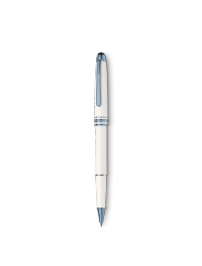 大班冰川系列经典款签字笔,涂覆白色名贵树脂,灵感源自勃朗峰的神秘冰川,象征万宝龙对高品质书写工具的不渝追求,以及品牌对于探险事业和冒险精神的崇高敬意。这款书写工具饰有蓝色PVD金属配件。