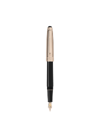万宝龙大班几何系列的灵感源自将大班系列经典设计与经典大班系列中不曾出现的新颖材料相结合的渴望。这款奢华的墨水笔采用精美的经典金质镀层黑色名贵树脂笔杆和金属笔帽,镌刻具有视觉效果的三维立体几何图案。笔帽饰有经典万宝龙六角白星品牌标识、经典金质镀层笔夹以及三枚压印万宝龙品牌名称的圆环。这款墨水笔点缀手工精制Au750/18K金镀铑笔咀。万宝龙以品牌经典金材与/或品牌经典金质镀层,演绎灵感源自黄金色泽的别致色彩呈现,打造品牌书写工具广受青睐的色彩基调。