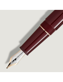 自20世纪20年代以来,勃艮第红便是万宝龙的主打色调。这支墨水笔的笔帽和笔杆由勃艮第红名贵树脂精制而成,搭配香槟金配件,笔帽顶端镶嵌标志性的白色万宝龙六角白星品牌标识。点缀手工精制Au585/14K纯金镀香槟金色笔嘴。