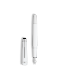 大班系列经典款墨水笔采用冰川白色名贵树脂制成,搭配优雅镀铂金配件,笔帽顶端镶嵌有白色六角白星品牌标识,笔嘴采用Au 585纯金镀铑,以手工精制而成。