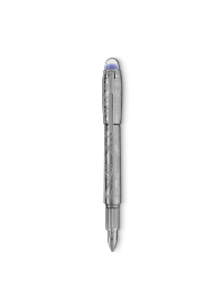 全新万宝龙星际行者系列,放眼地球之外,向繁星和银河致敬。这款全新星际行者系列呈现金属笔帽和笔杆的全新外观,令人联想到自然迷人杰作——魏德曼(Widmanstätten)花纹的复杂结构。所有金属部件都覆以深色钌镀层,笔帽顶部的深太空蓝圆顶令人想起到繁星满布的夜空,圆顶悬浮万宝龙六角白星品牌标识。这款墨水笔由手工打造,配备镀钌Au585金笔咀。