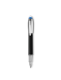 全新星际行者系列的主题是行走于星空之中。它旨在探索宇宙和外星系,亦包括人类神秘而伟大冒险之一:太空探索。该系列以全新设计致敬所有太空旅行者目睹我们蔚蓝色星球漂浮于广阔太空中时所描述的深沉情感。星际行者系列徽标技术在万宝龙品牌标识下方呈现蓝色半透明圆顶,令人联想到月平线上方出现的地球。此星际行者Doué系列书写工具配有镀铂金笔帽和配件,以及黑色名贵树脂笔杆。这款墨水笔以手工制作,配备镀铑Au585/14K金笔咀。
