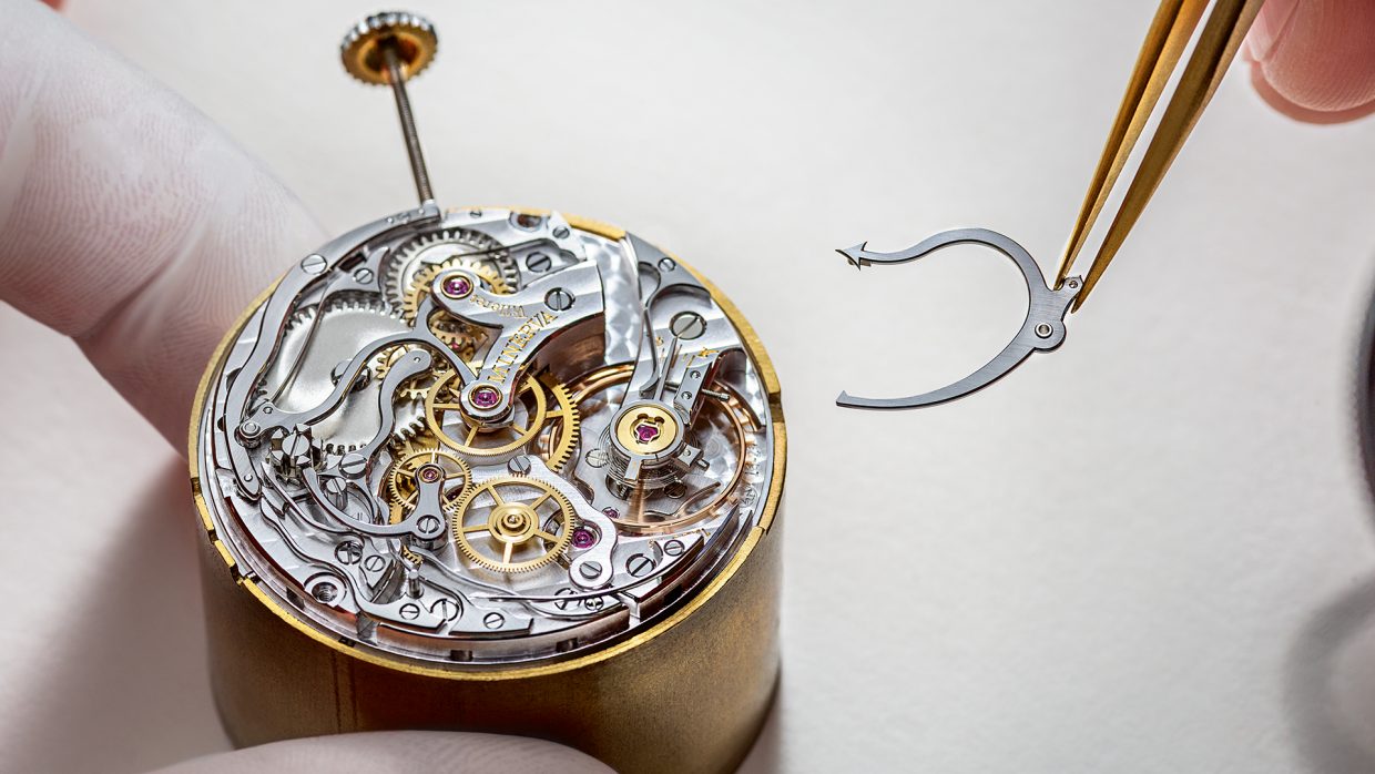 “制表工匠发挥专业知识,打造出纯手工摆轮游丝。”
