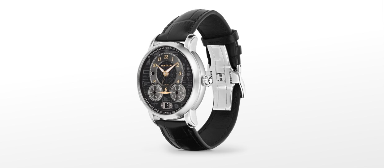 万宝龙艺术总监Marco Tomasetta以创意匠心,将墨水笔笔尖廓形融入小牛皮表带的设计之中,以此致敬品牌标志性书写工具。